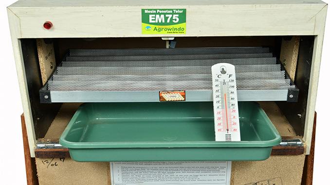 Pada mesin penetas telur dilengkapi adanya rak berputar yang berguna untuk meratakan selama proses pemanasan telur agar dapat menetas dengan sempurna. Mesin penetas telur ini hanya dapat dipakai untuk menetaskan telur unggas, seperti telur bebek, ayam, puyuh, dan mentok. Alat pengatur suhu pada mesin ini disebut dengan termostat.