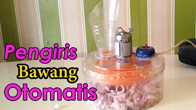 Alat pengiris bawang otomatis hadir dengan tujuan membantu mempermudah ibu rumah tangga atau kegiatan yang berkaitan dengan masak-memasak. Alat pengiris bawang otomatis sangat cocok dipakai ketika akan masak dalam jumlah besar. Adapun pada teknologi tepat guna ini dijalankan dengan motor listrik berdaya kurang dari 200 volt.